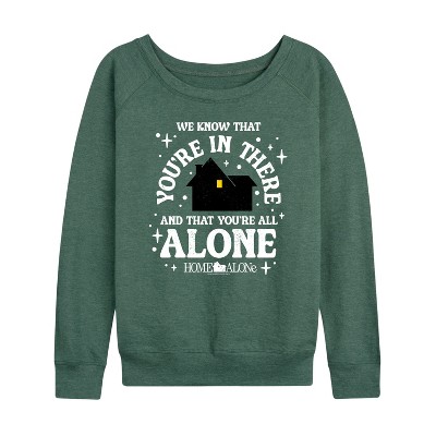 Women's - Home Alone - We Know Youre In There Lightweight French Terry Wide Neck Long Sleeve Graphic Shirt