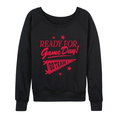 Women's - Instant Message - Ready For Game Day Lightweight French Terry Wide Neck Long Sleeve Graphic Shirt