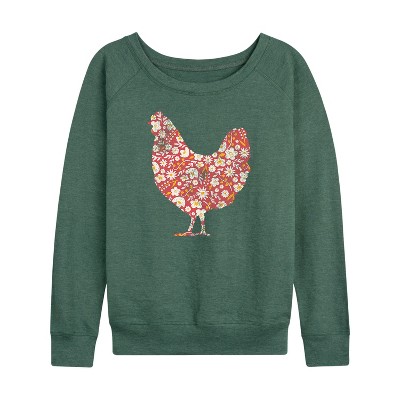 Women's - Instant Message - Floral Print Chicken Lightweight French Terry Wide Neck Long Sleeve Graphic Shirt