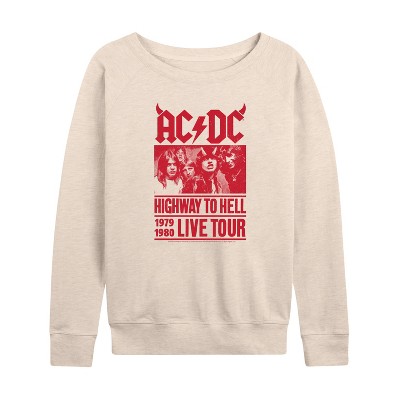 Women's - AC/DC - Lightning Guitar Lightweight French Terry Wide Neck Long Sleeve Graphic Shirt