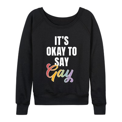 Women's - Instant Message - Okay To Say Gay Lightweight French Terry Wide Neck Long Sleeve Graphic Shirt