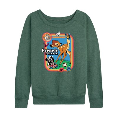 Women's - Bambi - Friends Forever Forest Animals Lightweight French Terry Wide Neck Long Sleeve Graphic Shirt
