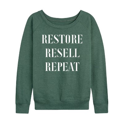 Women's - Instant Message - Restore Resell Repeat Lightweight French Terry Wide Neck Long Sleeve Graphic Shirt