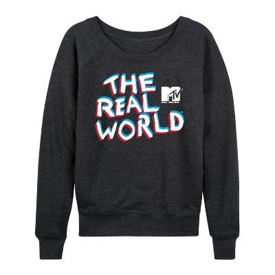 Women's - MTV - Lightweight French Terry Wide Neck Long Sleeve Graphic Shirt