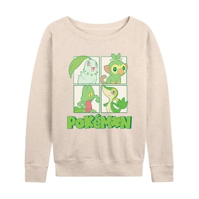 Women's - Pokémon - Green Pokemon Lightweight French Terry Wide Neck Long Sleeve Graphic Shirt
