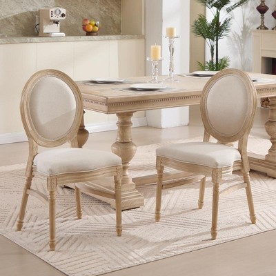 Gulches French Country Dining Chairs Set of 2, Upholstered Round Back with Wire Drawing & Carving,Disassemblable & Stackable