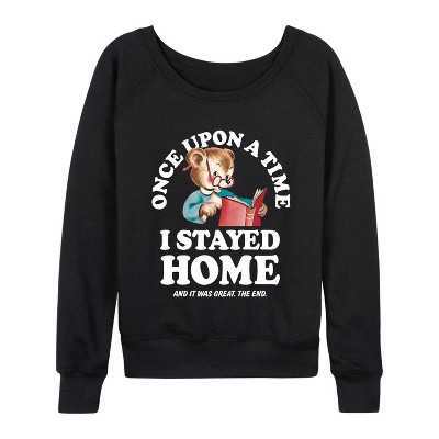 Women's - Instant Message - Its A Beautiful Day To Say In Bed Lightweight French Terry Wide Neck Long Sleeve Graphic Shirt