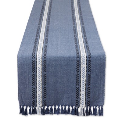 Design Imports Ribbed Fringe Table Runner, French Blue, 14X72"