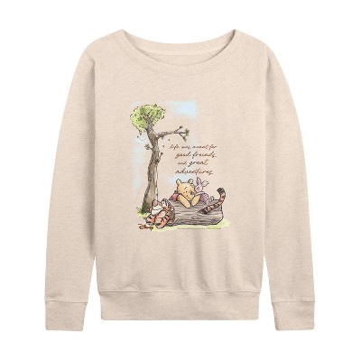 Women's - Winnie The Pooh - Life Was Meant For Good Friends Lightweight French Terry Wide Neck Long Sleeve Graphic Shirt