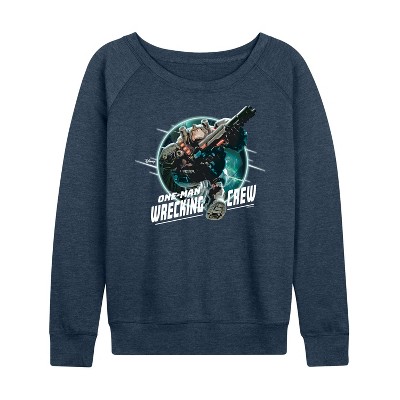 Women's - Disney - One Man Wrecking Crew Lightweight French Terry Wide Neck Long Sleeve Graphic Shirt