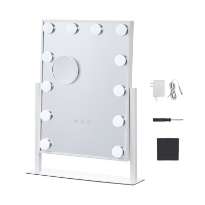 VEVOR Hollywood Vanity Mirror With Lights,12 Dimmable Bulbs & 3 Color Lighting Modes,Detachable 5X Magnification,360 Degree Rotation16.1x11.8 in,White