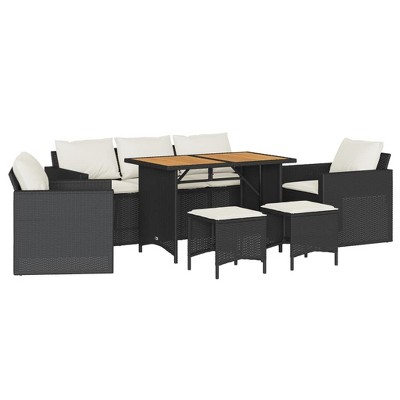 vidaXL 9 Piece Patio Sofa Set with Cushions Black Poly Rattan