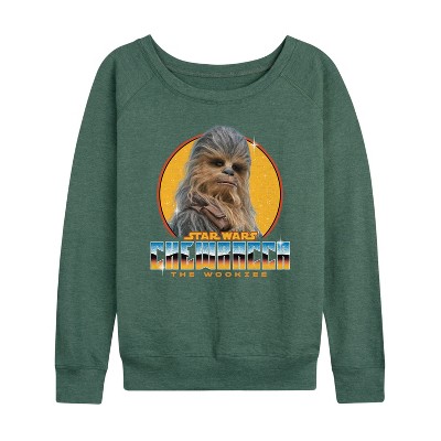 Women's - Star Wars - Chewbacca Lightweight French Terry Wide Neck Long Sleeve Graphic Shirt