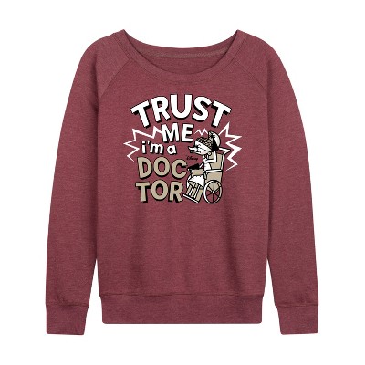 Women's - Peanuts - Snoopy Boo Sign Lightweight French Terry Wide Neck Long Sleeve Graphic Shirt