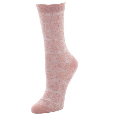 Natori Lace Trellis Cotton Blend Crew Socks One Size Fits Most