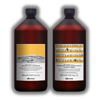Davines NaturalTech Nourishing Shampoo - (33.8 oz) & Davines Nourishing Vegetarian Miracle Mask - (33.8 oz) LITER DUO SET