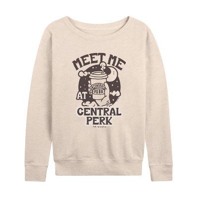 Women's - Friends - Meet At Central Perk Lightweight French Terry Wide Neck Long Sleeve Graphic Shirt
