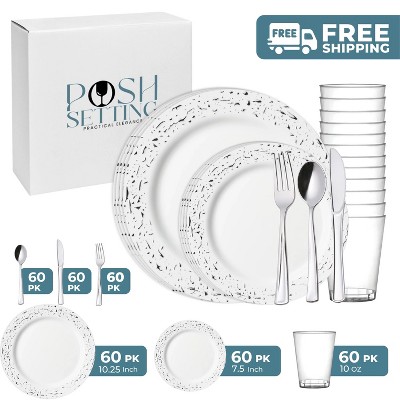 Posh Setting 896 Piece White And Silver Plastic Party Bundle - Whisk (128 Settings)