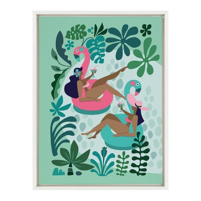 18" x 24" Sylvie Mid Century Modern Girl Friends by Rachel Lee Framed Wall Canvas - Kate & Laurel All Things Decor