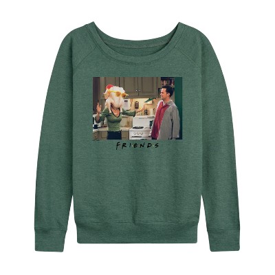 Women's - Friends - Monica Turkey Head Lightweight French Terry Wide Neck Long Sleeve Graphic Shirt