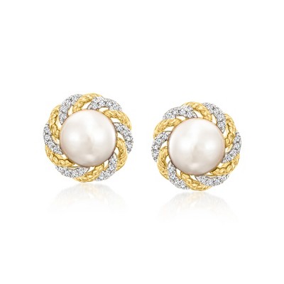 Black Bow Jewelry 6mm Round Multicolor Cubic Zirconia Stud Earrings in 14k Yellow Gold