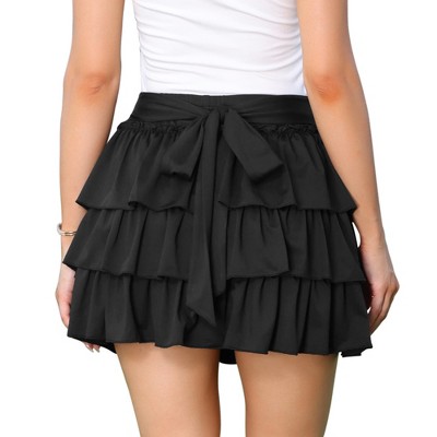 INSPIRE CHIC Women's Layer Ruffle Hem High Waist Elastic Pleated Flowy A-Line Mini Cake Skirts