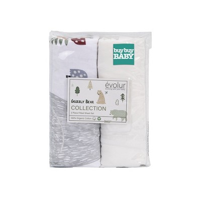 evolur Zoo Love 2-Piece Crib & Toddler Sheet Set – Ultra-Soft, Breathable Cotton Blend, Elasticized Fitted Sheets, Glacier Grey Animal Print