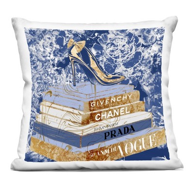 Stupell Industries Designer Glitz Heel on Books Fashion Glam Blue Printed Decorative Throw Pillow Indoor Decorative Throw Pillow, 18 x 18