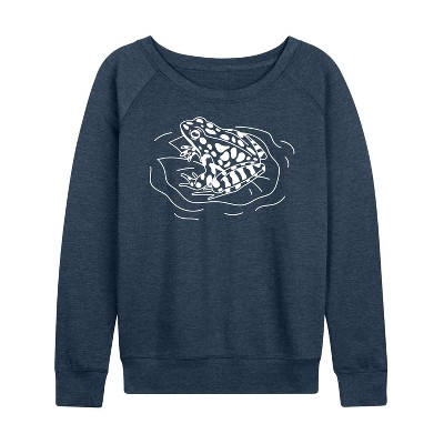 Women's - Instant Message - Frog On Lily Pad Lightweight French Terry Wide Neck Long Sleeve Graphic Shirt