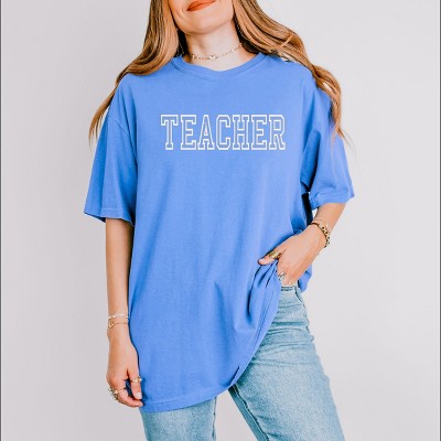 Simply Sage Market Embroidered Teacher Outline Garment Dyed Tee