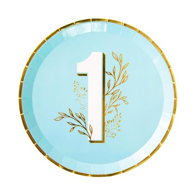 Jollity & Co. - 1st Birthday Dinner Plates in Blue - Pack of 8 Paper Plates