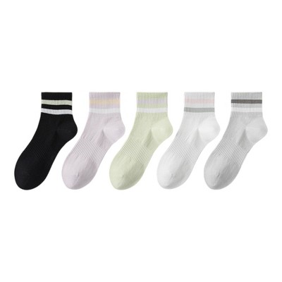 Anna-Kaci 5 Pairs Women Cotton Ankle Socks with Pastel Striped Cuffs Soft Breathable Knit Fabric for Everyday Comfort