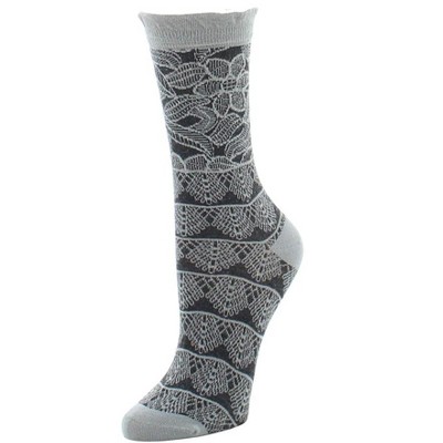 Natori Lace Trellis Cotton Blend Crew Socks One Size Fits Most