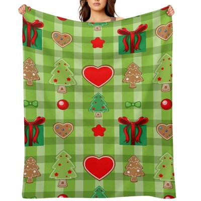 FIONECA Christmas Gingerbread Man Ornament Star Soft Blanket Warm Holiday Home Cozy Throw 60x80 inches