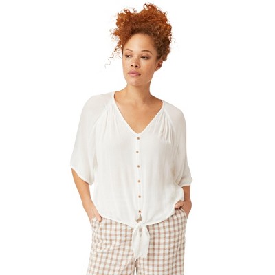 Agnes Orinda Women's Plus Size V Neck Petal Sleeve Button Down Business Work Dressy Chiffon Shirts