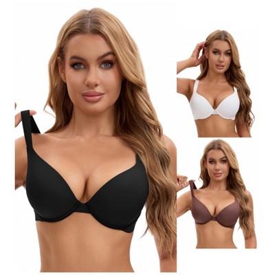INSPIRE CHIC Women's Push Up Underwire Adjustable Straps Seamless Soft Bras 3 Packs