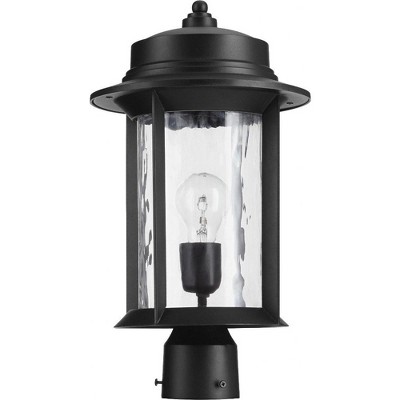 Progress Lighting Felton 1-Light Outdoor Black Post Lantern with Rippled Glass Shade