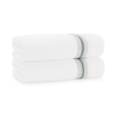 Aston & Arden Luxury Ring Spun Cotton Bath Towels (2 Pack), 600 GSM, 30x60 in., White with Striped Ombre Border