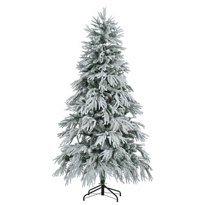 6FT Christmas Tree with 1593 Tips, Red Berries & Pine Cones,Snow-Dusted PE+PVC Branches, Hinged Design for Easy Setup,Natural Holiday Tree Decoration