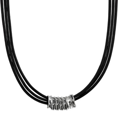 Bella Silver Sterling Silver, Black Enamel Oval Necklace - Black - 16+2 Inch