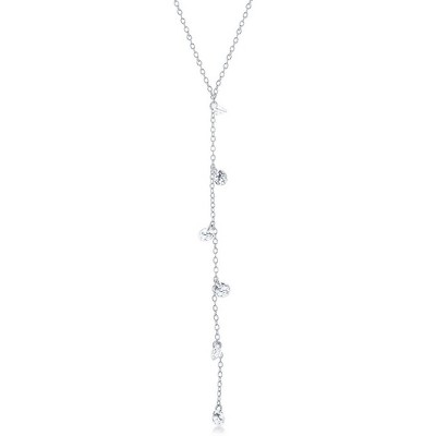 Bella Silver Sterling Silver Hanging CZs Lariat 'Y' Necklace - Rhodium Plated - Silver - 16+2 Inch