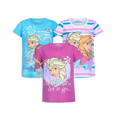 Disney Frozen Elsa and Anna Girls’ Short Sleeve Shirt 3 Pack for Toddler and Little Kids