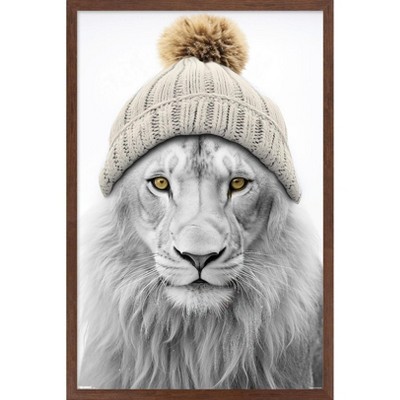 Trends International Sasha - Lion In Winter Framed Wall Poster Prints