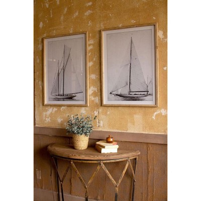 Wall Art, Framed Sailboat Prints Under Glass 31.5"H – Nautical Gray Wall Decor, Set of Two by Kalalou