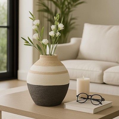 17" x 7.5" Terracotta Vase White - Olivia & May: Coastal Style, Indoor Ceramic, Round Amphora
