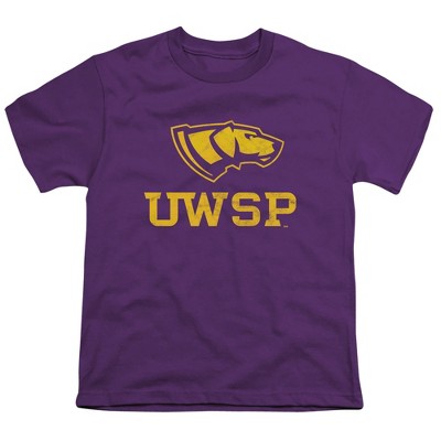 University Of Wisconsin Stevens Point Distressed Primary Kids T-Shirt For Youth Purple