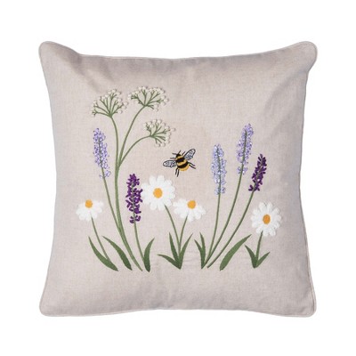 C&F Home Lavender & Bee Garden Cotton Blend Handwoven Spring Accent Throw Pillow 18" x 18"