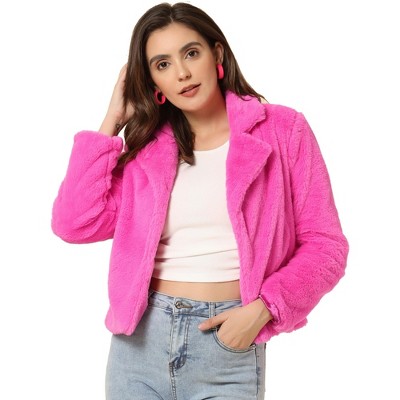Allegra K Women's Stand Collar Pocket Single Breasted Long Sleeve Short Coat Jacket