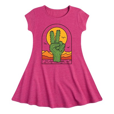 Girls' - Instant Message - Cactus Peace Sign Fit & Flair Cap Sleeve Graphic Dress