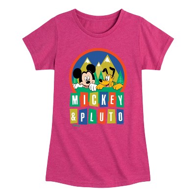 Girls' - Disney - Mickey And Pluto Fitted Short Sleeve Graphic T-Shirt